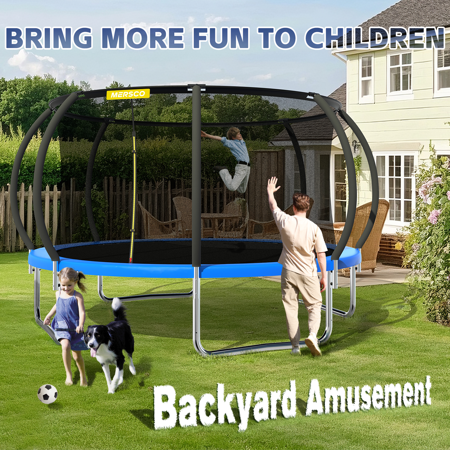 Mersco 14ft Trampoline for Kids and Adults,Pumpkin Outdoor Trampoline with Enclosure and Net,Kids Trampoline 1320lbs Loading,Birthday Gifts,Blue