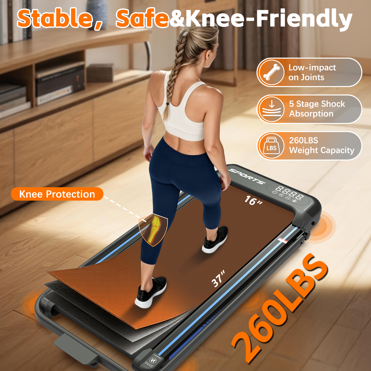 Get a smooth, consistent performance that won't disturb your household, roommates, or coworkers on a call. The robust motor quietly supports users up to 265 lbs, making it a reliable fitness partner for the whole family. 💪