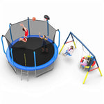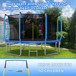Trampolín deportivo resistente de 12 pies de color azul con aro de baloncesto para divertirse